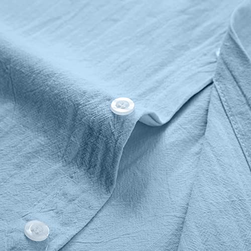 VANVENE Camisas de lino para hombre, de algodón, de manga corta, ajuste regular, camisas casuales de verano, azul, L