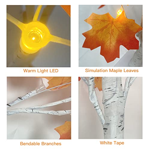 XVZ Árbol de Luces, 24 LED Lámpara de Mesita de Arce con Cable USB o Funciona con Pilas para Decoración Otoño, Hogar, Navidad, Año Nuevo, Pascua Decorativo – Blanco Cálido