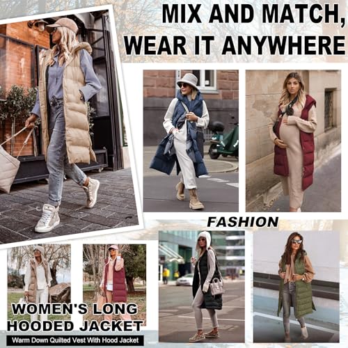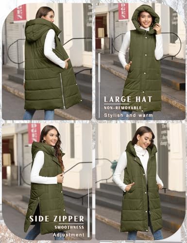 Yuson Girl Chaleco Mujer Chalecos Acolchados Medio Largo Chaquetas sin Mangas Casual Chaleco Grueso Invierno Abrigo Outwear con Capucha Largos Calentador de Cuerpo con Bolsillos(Verde militar, M)