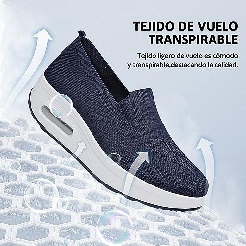 Zapatillas De Deporte Zapatos Respirado Ligero Malla Mujeres Deporte Running Zapatillas Sacudir Casual Zapatos Height-Increasing Sneaker Azul, EU39 EU